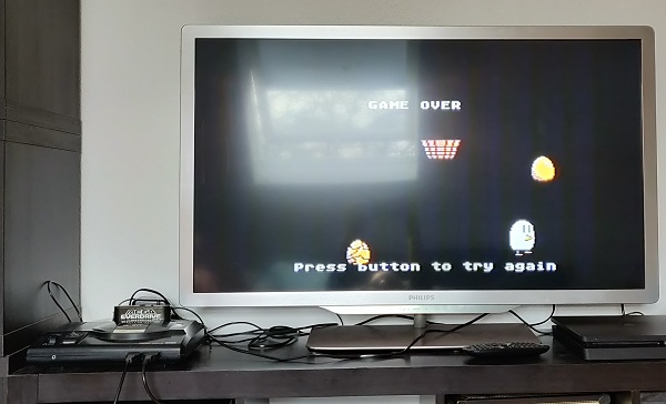 Sejamos honestos, o resultado está longe de ser alucinante. O equilíbrio do jogo é horrível e há um enorme bug no gerador aleatório que torna o jogo imbatível após o 5º ovo. Também não há imagem de fundo, nenhum som, etc. Mas é um novo jogo Mega Drive/Genesis, criado do zero em 60 minutos, que roda no console real. Não sei para você, mas para mim já é algum tipo de conquista!